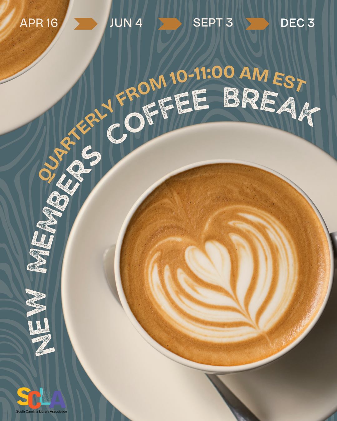 Join the leadership of the New Members Round Table for quarterly, virtual coffee breaks from 10:00-11:00 AM. We'll use this time to discuss ways to get involved with SCLA, share best practices, and have a moment of reflection before our day begins. We look forward to seeing you soon! Date: Wednesday, December 3rd, 2025